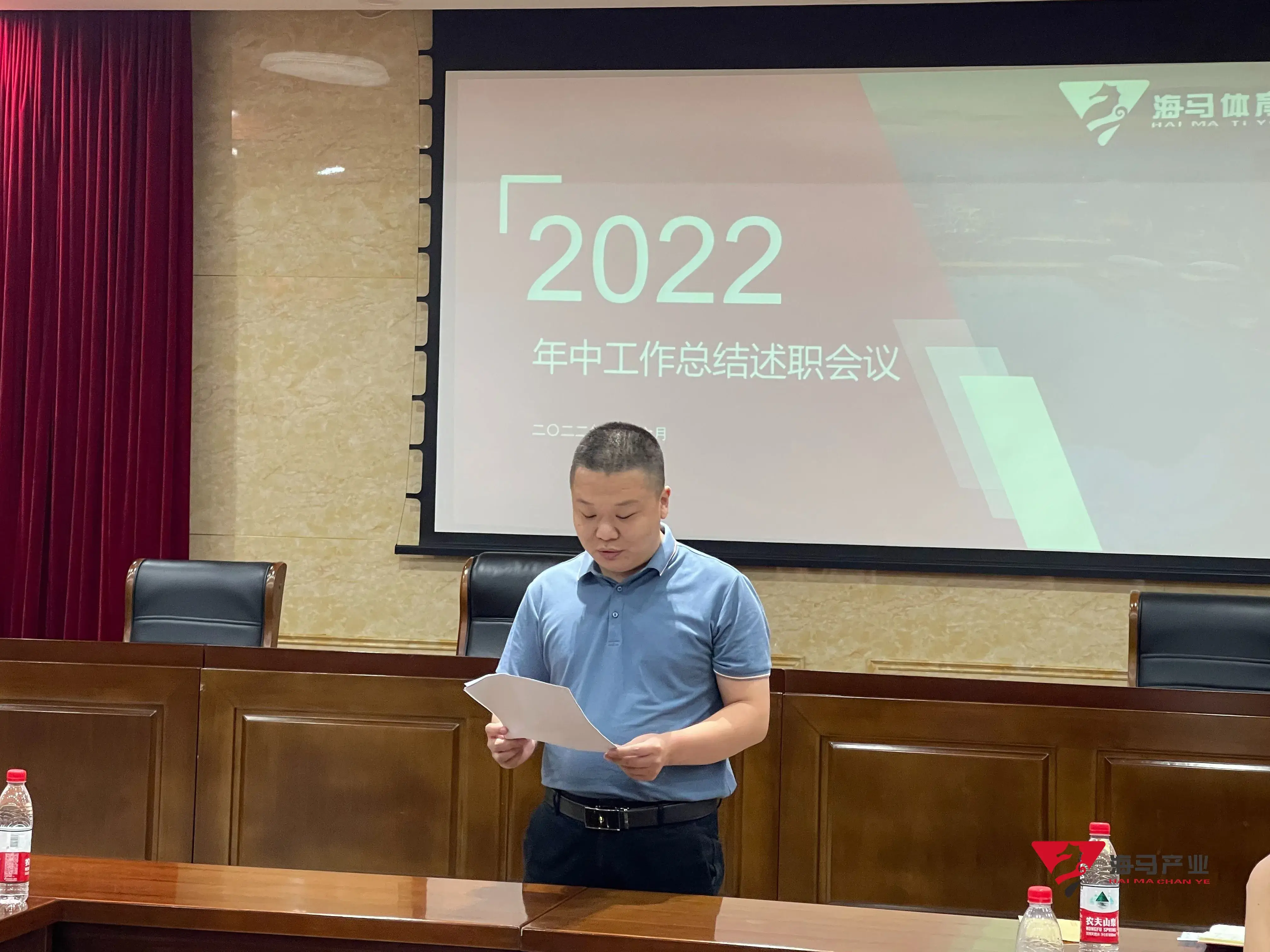 2022年6月29日下午,尊龙凯时文化产业集团在山东省体育中心二楼会议室召开年中工作总结述职会议,会议对上半年工作成果进行了总结汇报,并就下半年重点工作进行部署。总经理王海民出席了本次会议。会议由综合管理部负责人王永健主持。